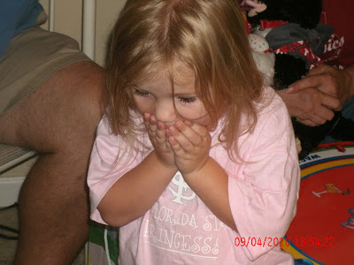 My good friend, Carey Williams, at www.pinkjunebug.com needed Ava again to help her model. What, you ask?? Nothing greater than the Florida State blingwear!! She had UF stuff and Bama things. Of course my little girl was the Nole Princess!! Here is Ava and Arden giving "mean faces." Although Ava is almost not mean by this picture!